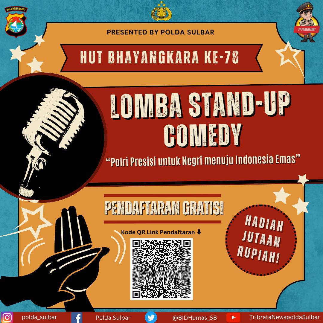 MAMUJU,TERASSULBAR.ID-Untuk menyambut dan memeriahkan hari bhayangkara yang ke 78, Kepolisian daerah sulawesi barat mengelar berbagai kegiatan lomba salah satunya adalah kompetisi Stand-up Comedy yang akan dibuka secara umum.