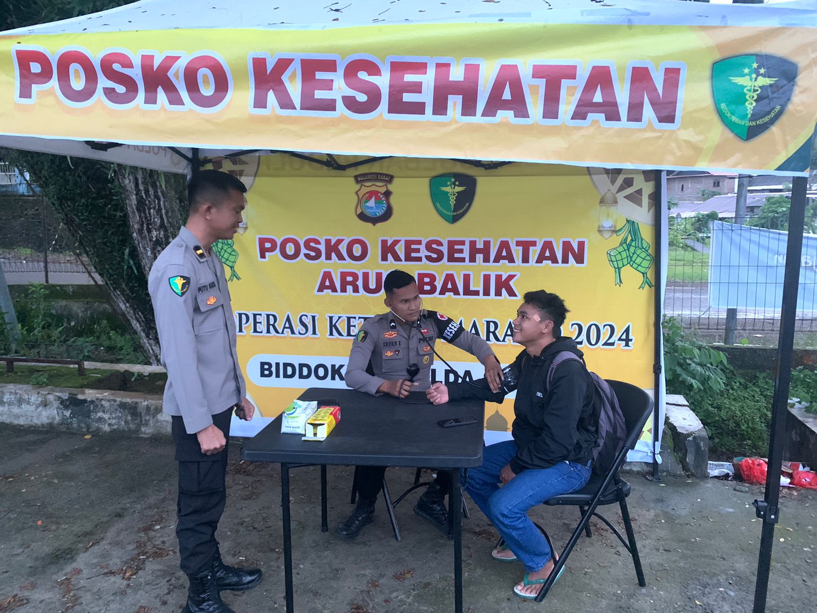 MAMUJU,TERASSULBAR.ID-Memastikan kondisi kesehatan sopir dan penumpang tetap terjaga selama musim mudik dan balik lebaran, Bidang Dokter Kesehatan (Biddokkes) Polda Sulbar turus hadir memberikan layanan kesehatan.