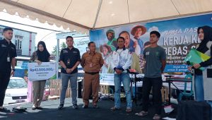 “BPJS Ketenagakerjaan Majene juga melakukan penyerahan santunan Jaminan Kematian kepada dua ahli waris pekerja serta penyerahan kartu peserta 33 TK kurir jet food JKK dan JKM,” ungkapnya.