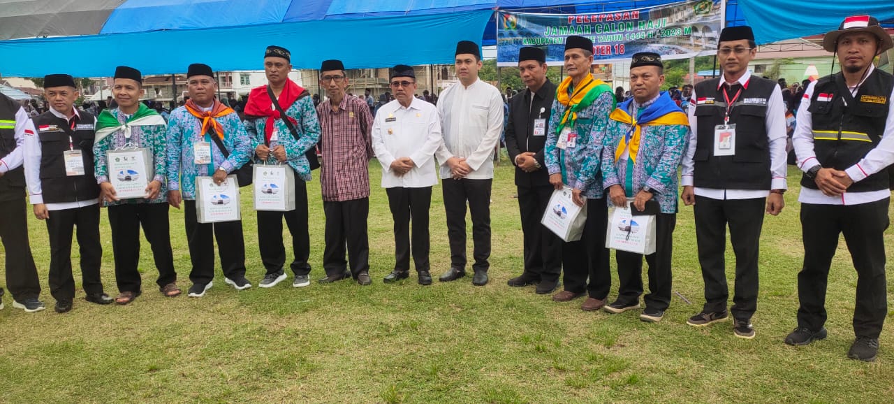Ratusan CJH 2023, dilepas Bupati Majene Andi Achmad Syukri di Stadion Prasamya Mandar Majene, Minggu (04/06/2023).