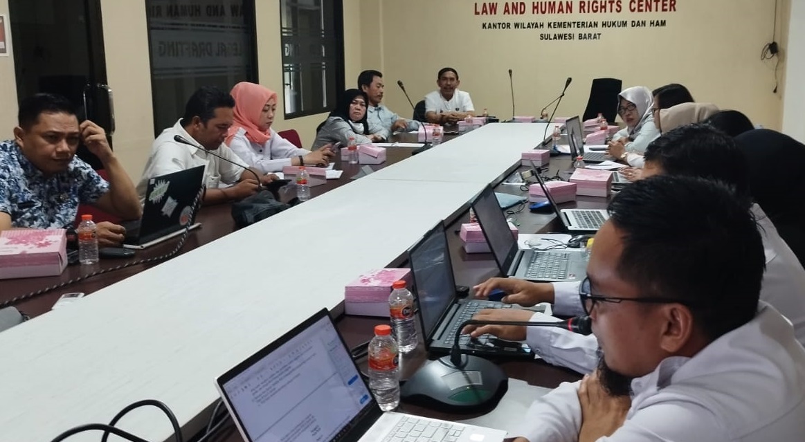 Pembahasan berlangsung di Ruang Rapat Baharuddin Lopa Kanwil Kemenkumham Sulbar dengan materi dua rancangan peraturan daerah tentang Kabupaten Layak Anak dan Raperda tentang Pengarusutamaan Gender.