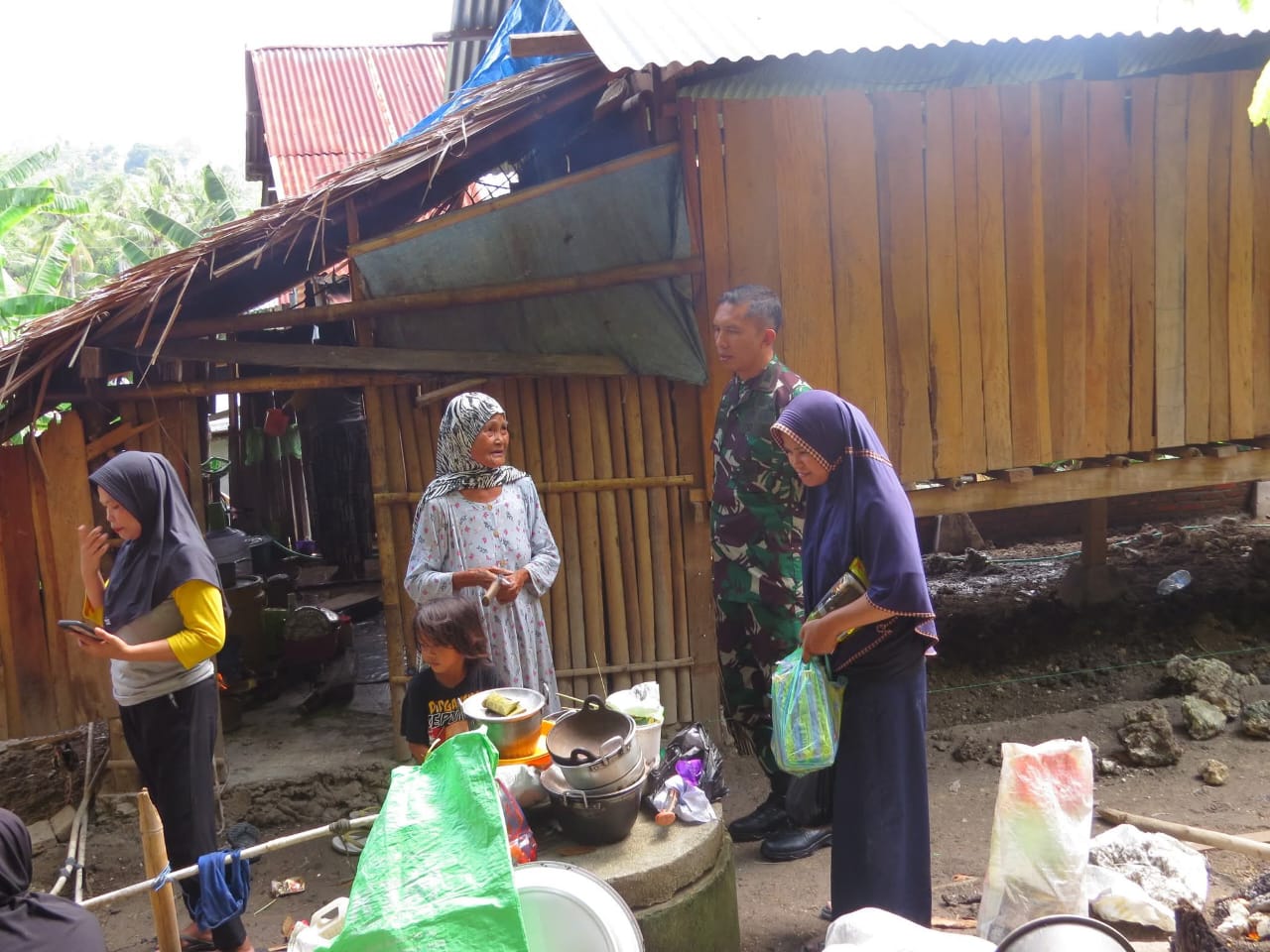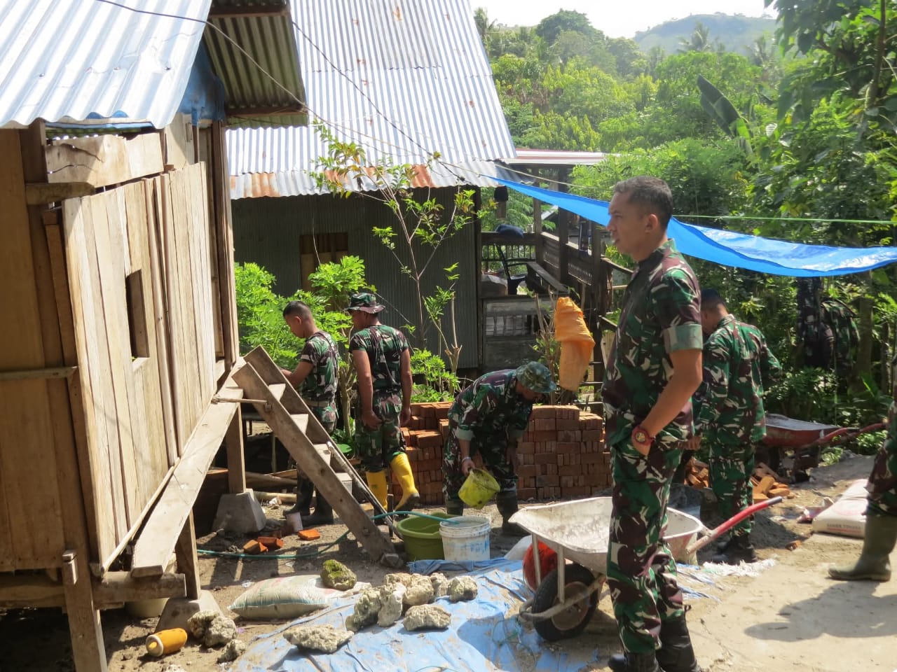 Sejak pagi, sejumlah prajurit TNI bersama warga bergotong royong memindahkan material bangunan seperti semen, pasir, dan batu bata dari pinggir jalan menuju lokasi rumah yang berjarak sekitar 100 meter. Aktivitas itu berlangsung penuh semangat dan keakraban di tengah suasana pedesaan yang masih asri.