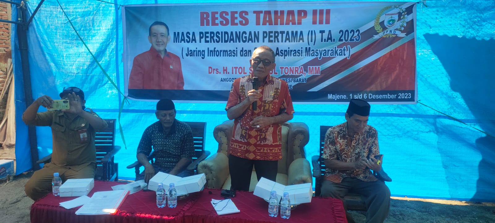 “Aspirasi yang berhasil kita himpun melalui reses ini, nantinya akan diperjuangkan melalui lembaganya,” terang H. Itol Syaiful Tonra Anggota DPRD Provinsi Sulbar saat melakukan reses tahap III masa persidangan pertama 2023 di Desa Balombong Kecamatan Pamboang, Selasa (05/12/2023).