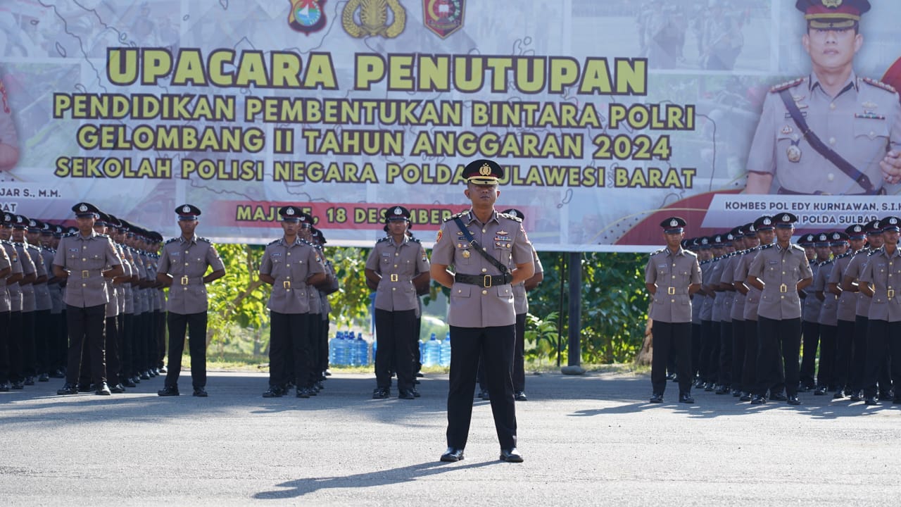 Polda Sulbar – Kepala Kepolisian Daerah Sulawesi Barat (Kapolda Sulbar) Irjen Pol Adang Ginanjar memimpin langsung upacara penutupan Pendidikan Pembentukan Bintara (Diktukba) Polri Tahun Anggaran 2024 di SPN Mekkatta Polda Sulbar, Rabu (18/12/24).