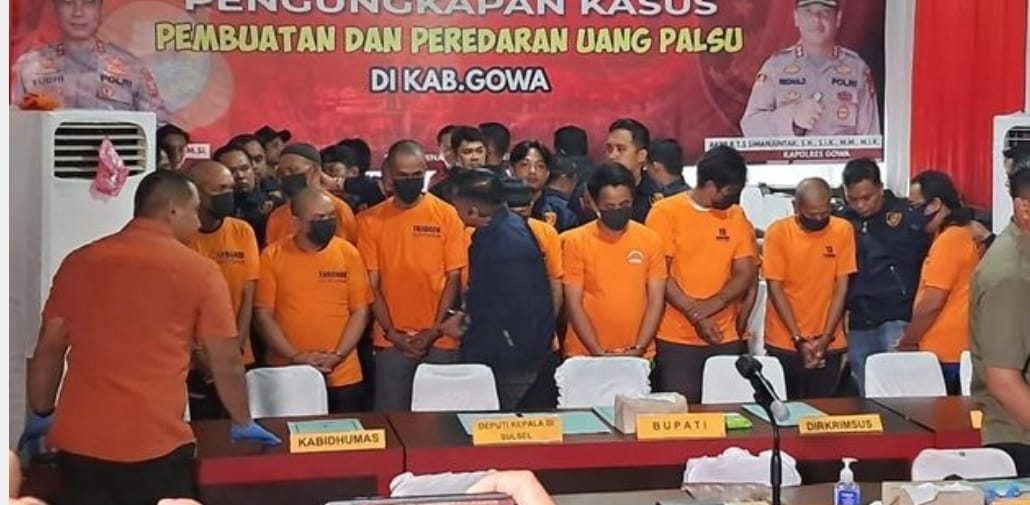 Dalam konferensi pers yang digelar di Polres Gowa, Sulawesi Selatan, Kamis, 19 Desember 2024, Kapolda Sulawesi Selatan Irjen Yudhiawan Wibisono, mengungkapkan para tersangka yang terlibat dalam pembuatan dan peredaran uang palsu ada 17 orang dengan latar pekerjaan yang berbeda-beda.
