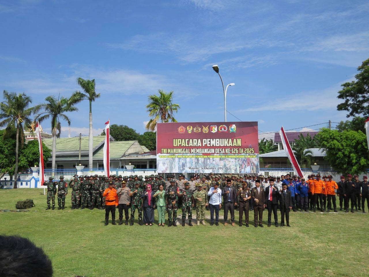 Majene, — Kodim 1401/Majene secara resmi menggelar Upacara Pembukaan TNI Manunggal Membangun Desa (TMMD) ke-126 Tahun Anggaran 2025, di Lapangan Pendopo Rumah Jabatan Bupati, Kelurahan Pangali-ali, Kecamatan Banggae, Kabupaten Majene, Rabu (8/10/2025).