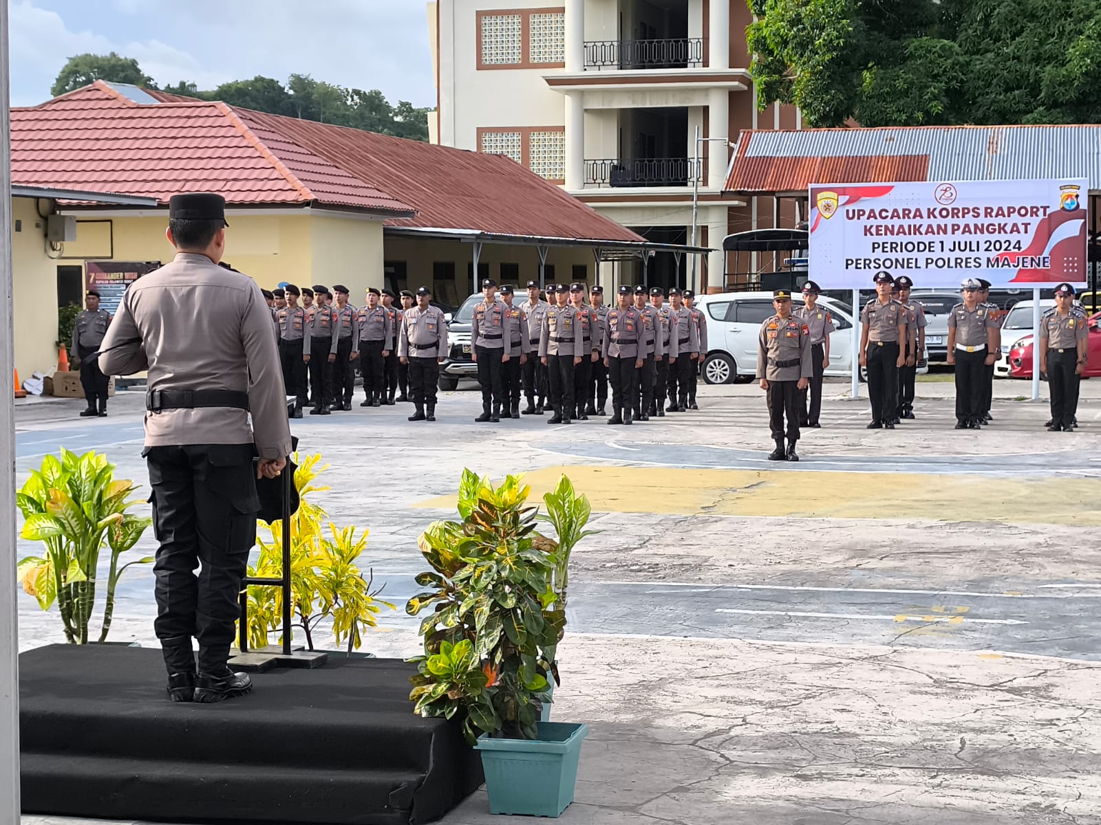 Upacara yang dihadiri oleh seluruh pejabat utama Polres Majene, Personel Polres Majene, dan Bhayangkari ini dipimpin langsung oleh Kapolres Majene, AKBP Toni Sugadri, S.I.K. Dalam sambutannya, Kapolres Toni mengucapkan selamat kepada seluruh personel yang memperoleh kenaikan pangkat pada periode 1 Juli 2024.