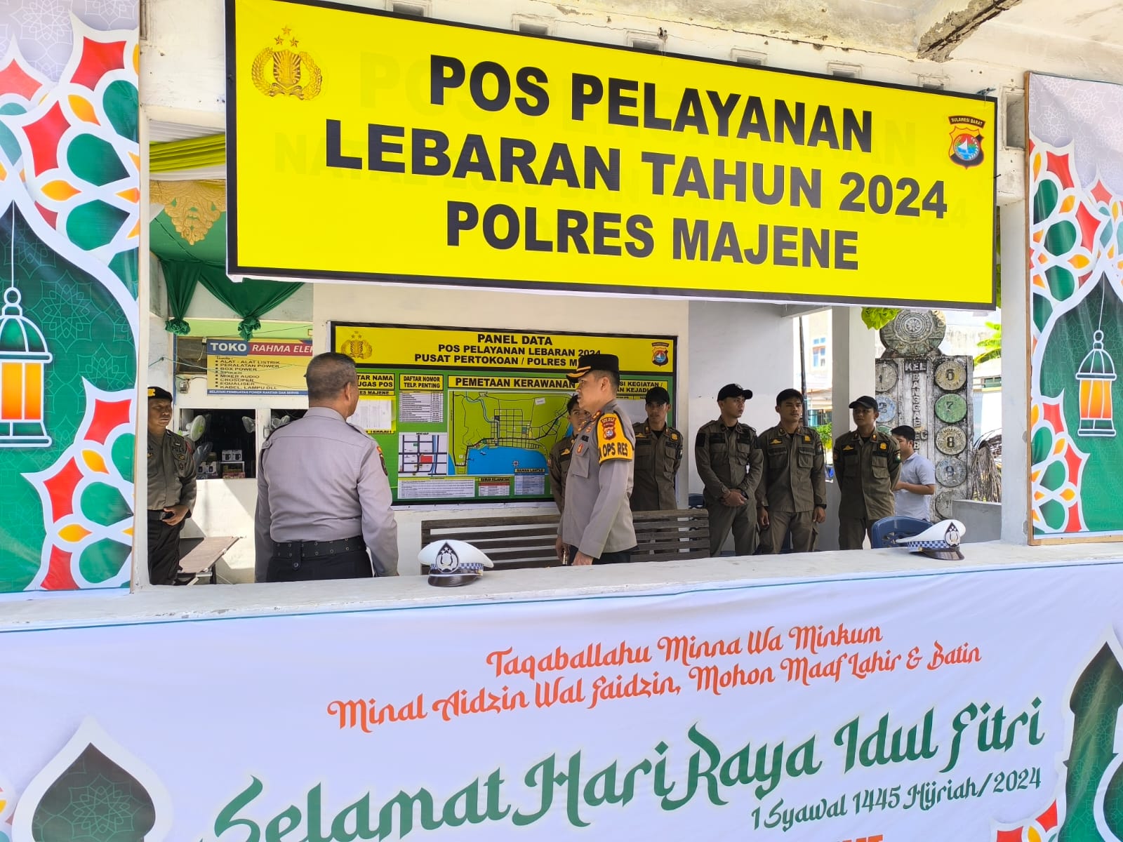“Kami telah melakukan pengecekan di Pos Pelayanan Lebaran Polres Majene dan Pos Pengamanan Pasar Sentral Majene guna memastikan segala sesuatunya berjalan lancar dan aman untuk masyarakat yang akan merayakan Idul Fitri”. Ujar AKBP Toni Sugadri