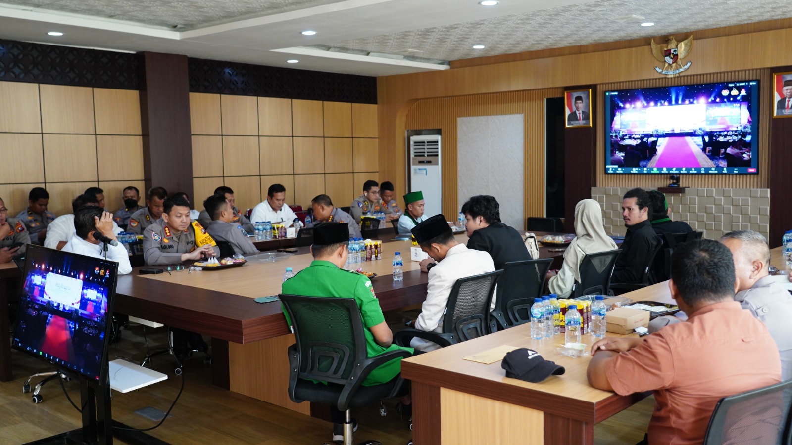 Terlihat di ruang vicon Polda Sulbar, para pejabat utama Polda Sulbar bersama para organisasi mahasiswa dan tokoh masyarakat yang di undang begitu semangat dan antusias mengikuti seluruh rangkaian kegiatan.
