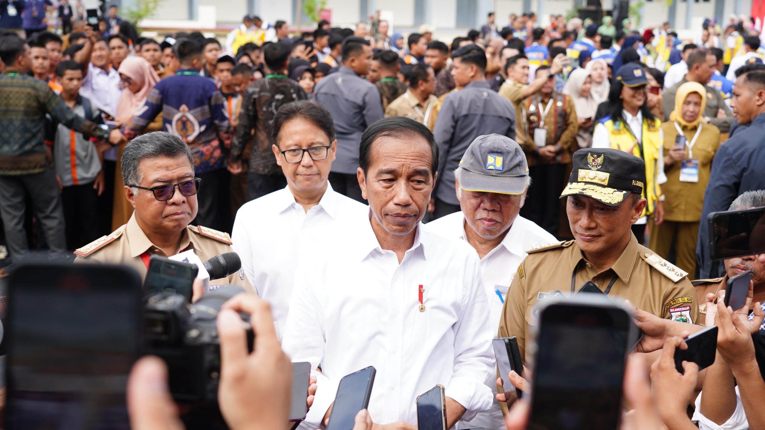 Presiden saat meresmikan rehabilitasi dan rekonstruksi Infrastruktur pasca bencana Sulbar dan pelaksanaan Inpres Jalan Daerah (IJD) Sulbar turut di dampingi ketiga Mentrinya, PJ. Gubernur, Ketua DPRD Sulbar, Sekprov, Kapolda, Danrem dan para petinggi di Sulbar.