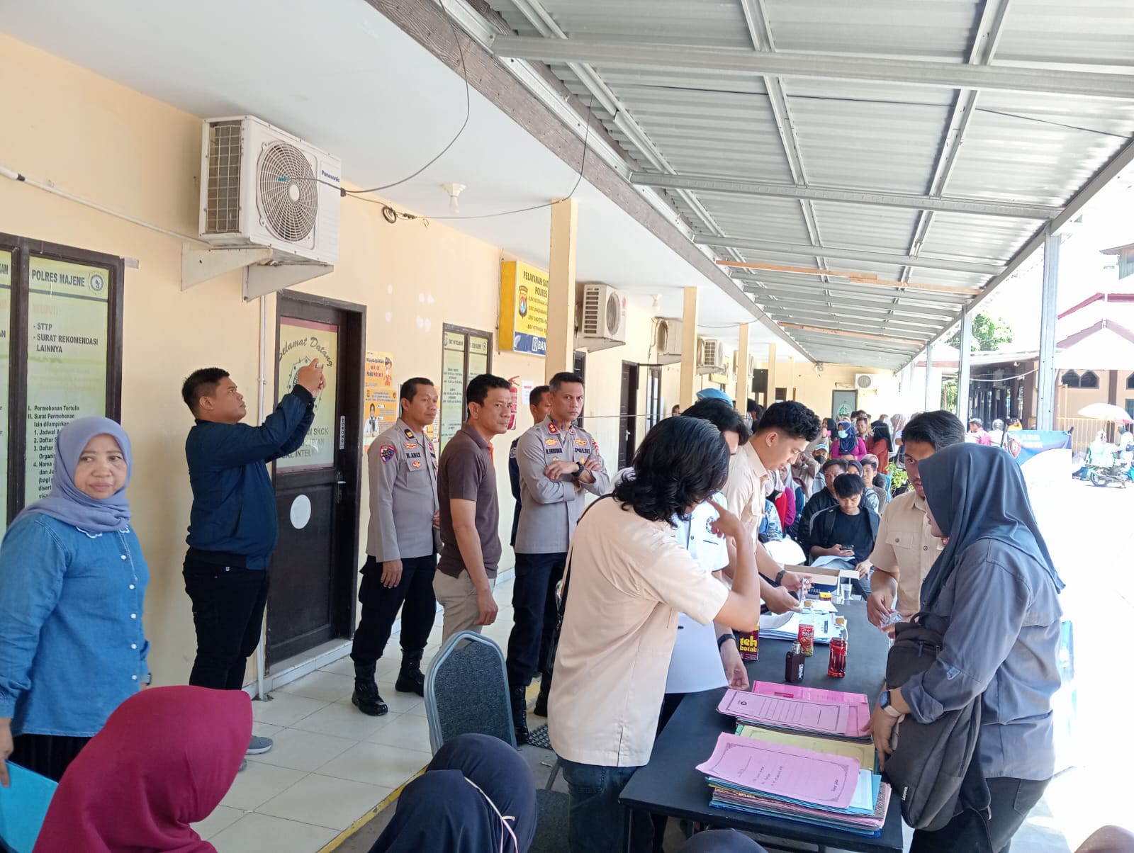Kapolres Majene, AKBP Muhammad Amiruddin, S.I.K., turun langsung memantau situasi. Ia berdialog dengan para pemohon yang sejak pagi mengantre untuk memastikan pelayanan berjalan lancar.