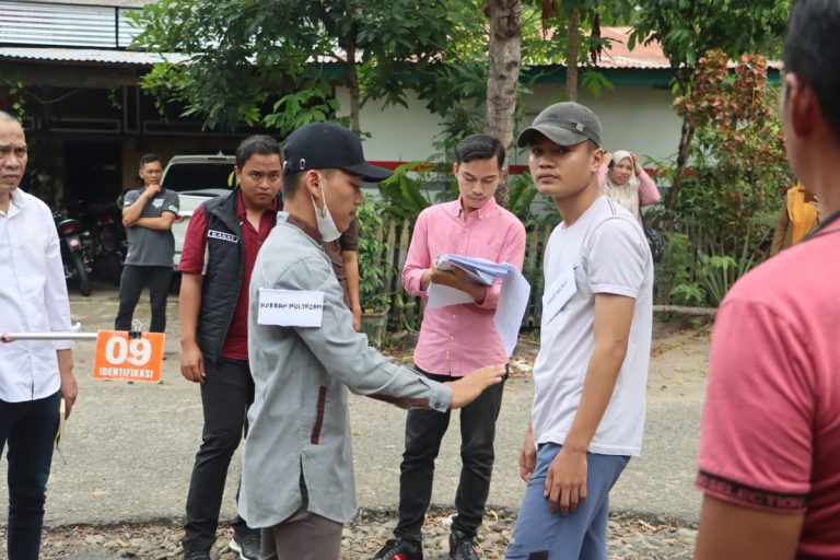 Pra rekontruksi ini memperagakan 22 adegan, dari versi korban 16 adegan, versi terduga pelaku atau saksi enam adegan.