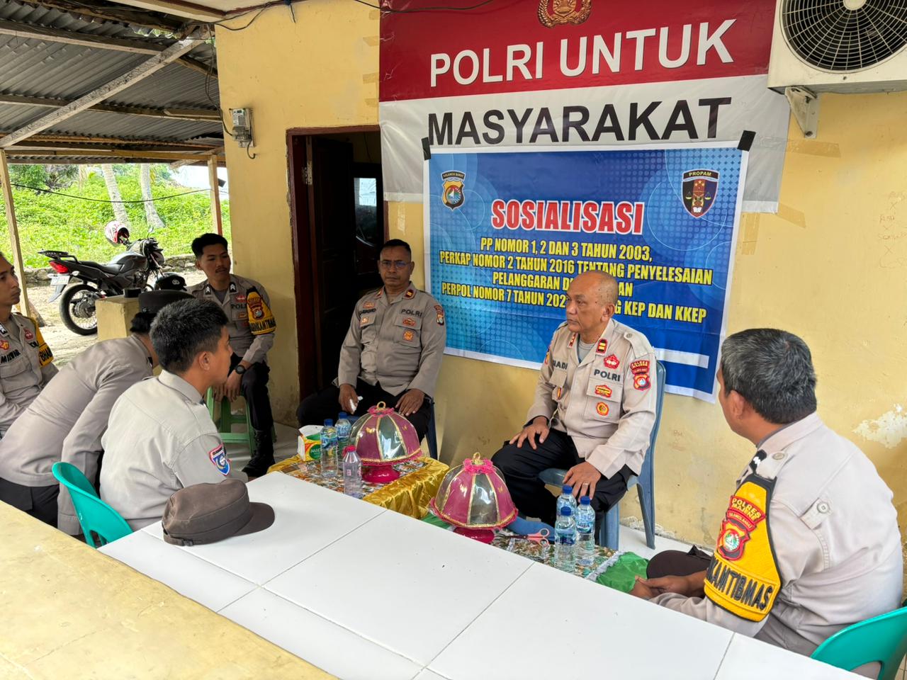 Selain melaksanakan Gaktiblin, IPTU Slamet juga memberikan sosialisasi mengenai aturan yang menjadi pedoman personel, di antaranya PP Nomor 1, 2 dan 3 Tahun 2003, Perkap Nomor 2 Tahun 2016 tentang penyelesaian pelanggaran disiplin, serta Perpol Nomor 7 Tahun 2022 tentang Kode Etik Profesi (KEP) dan Kode Etik Profesi Polri (KEPP).