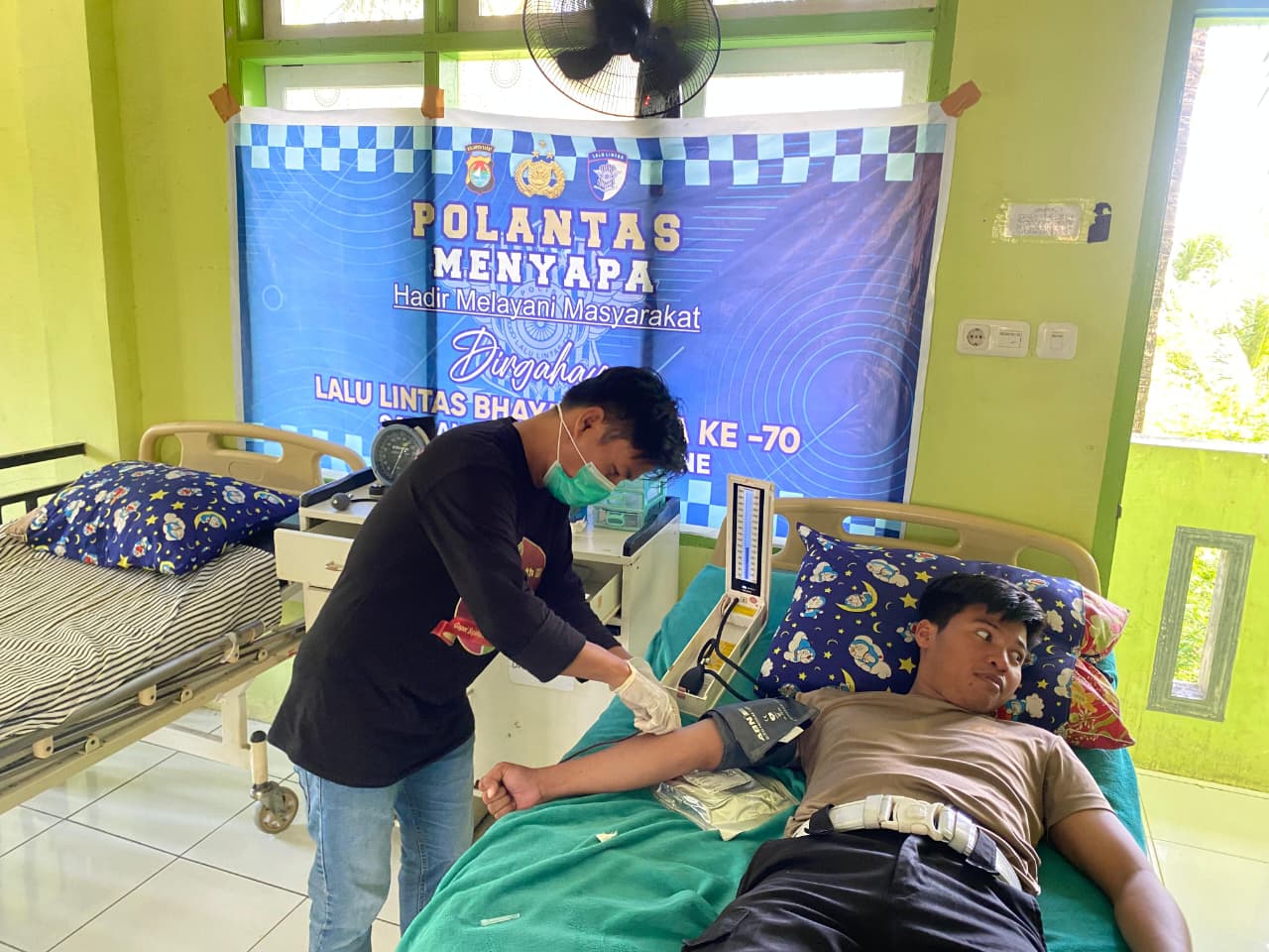 Polres Majene – Dalam rangka memperingati Hari Ulang Tahun Polisi Lalu Lintas (Polantas) ke-70 tahun 2025, Satuan Lalu Lintas Polres Majene menggelar kegiatan sosial bertajuk “Polantas Menyapa”. Kegiatan tersebut diwujudkan melalui bakti kesehatan donor darah yang dilaksanakan di unit transfusi darah RSUD Majene, Senin (15/9/25).