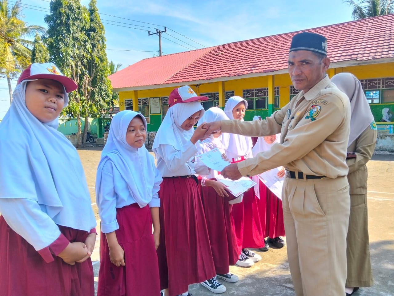 Pemberian penghargaan dan cinderamata, diberikan usai Upacara Bendera, Senin 1 September 2025, di halaman SDN No. 16 Tanisi.