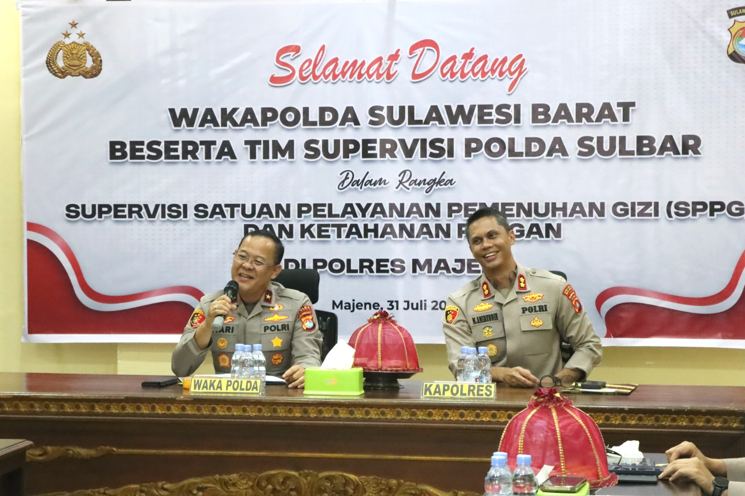 Majene – Wakil Kepala Kepolisian Daerah Sulawesi Barat, Brigjen Pol. Hari Santoso, S.I.K., M.Si., bersama tim supervisi Polda Sulbar melaksanakan kunjungan kerja ke Polres Majene dalam rangka supervisi Program Satuan Pelayanan Pemenuhan Gizi (SPPG) dan Ketahanan Pangan. Kegiatan ini berlangsung di ruang data Polres Majene, Kamis (31/7/2025).